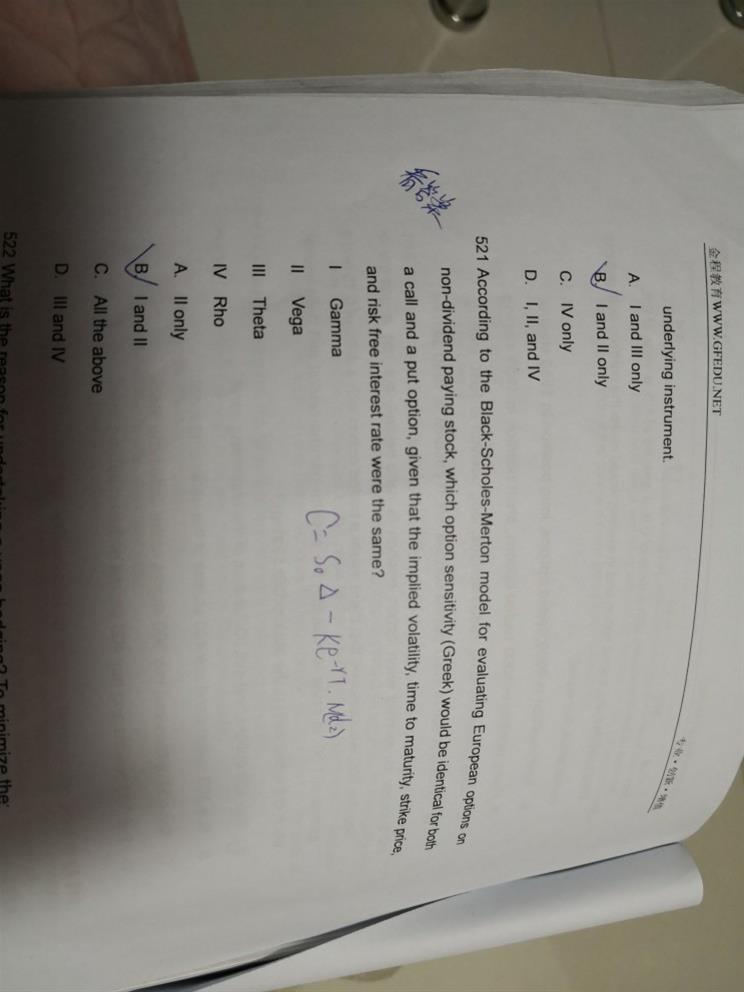 521题为什么选B。bsm公式中也没有包含gamma,为什么呢这么选呢,答案没看懂,谢谢。