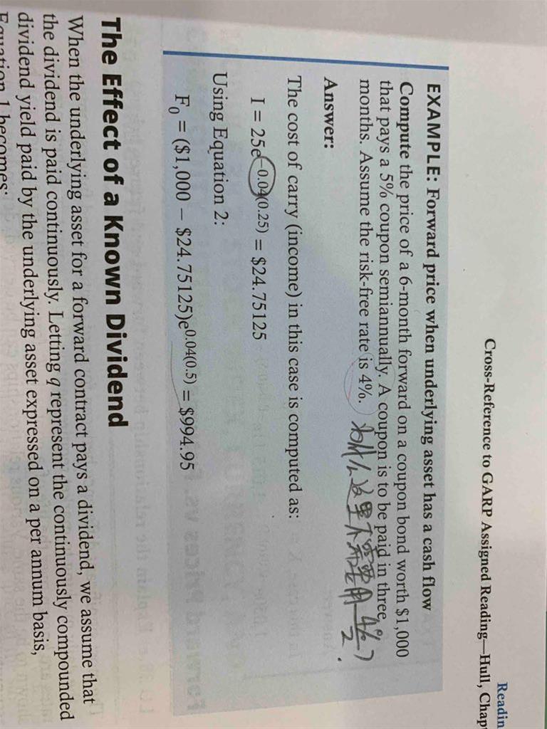 老师,请问在计算forward price时,如果题目中给出了risk free rate是年华的,为什么计算公式里不需要把这个rate处以相应的compound periods呢?但是T那里需要选取相应的到期时间段啊?具体的在notes里有道题目(请看以下图片);而我们在计算bond或futures rate时则需把annual rate除以相应的compound periods.