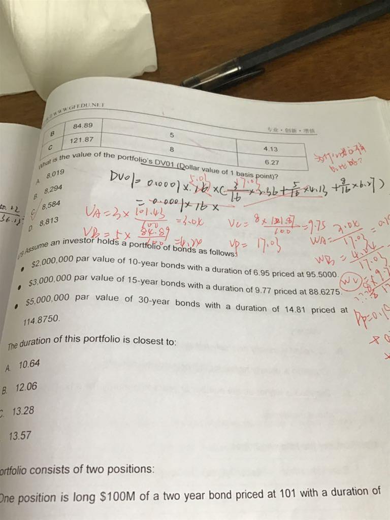 老师你好,我想问一下233页478题,这一题的价值为什么用3✖️101.43➗100等这样的式子列出来?算权重的时候我看答案前两次项都是价值除以了总价值,但答案wc还✖️了8是不是写错了啊