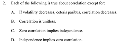 老师请问,2 题,为什么A是正确的,correlation=cov/σxσy?