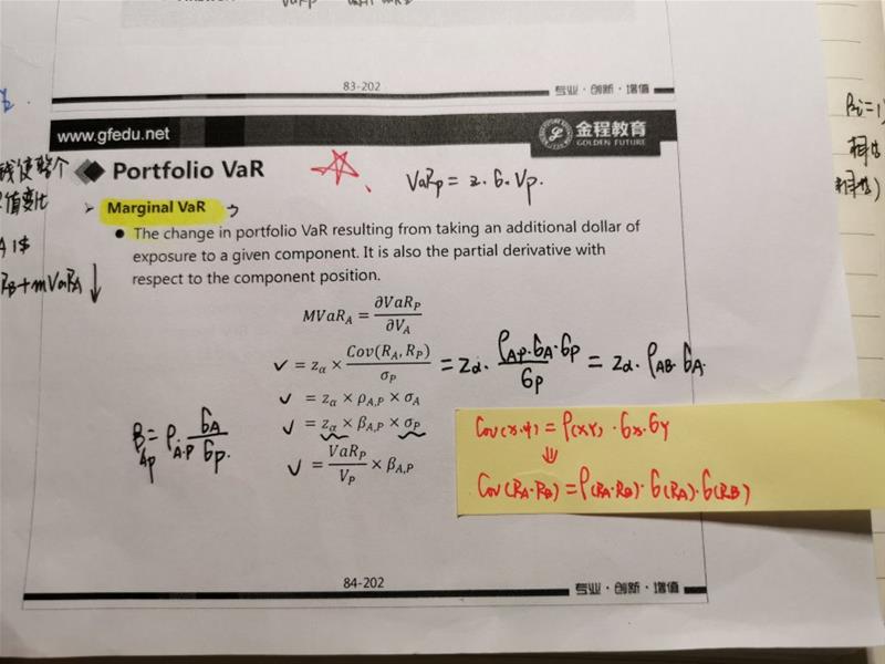 请问老师,cov(RA,RP)应该是资产A的风险与投资组合风险的协方差吧,那后面所有的相关系数p和波动率是不是应该也表示风险的相关系数和波动率~按照一级所学的转换公式,协方差的下标和p以及波动率应该保持一致的吧,类似我写红色便签纸上的?