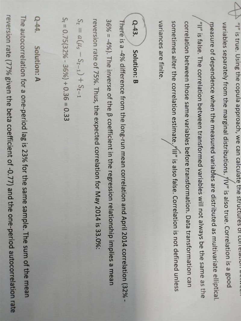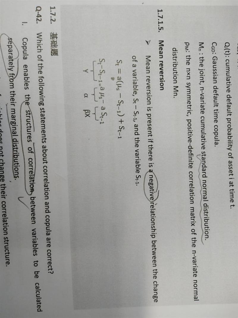 老师C选项Copulas make it possible to model marginal distributions and the dependence structure separately.能否这么理解:要直接得到AB两个变量的联合分布上的同时违约的概率很困难,现在用Copula去算,就可以把AB变量先拆出来,先单独看他俩的marginal分布,再在将两变量的边际分布映射之后根据某个相关性建模,最后得到两变量同时违约的概率即dependence structure,这样等于是把AB的边际分布和相关性结构分开来建模了