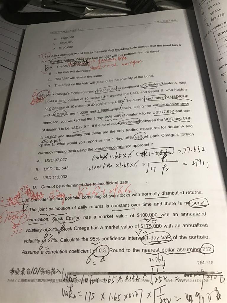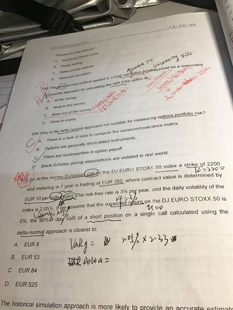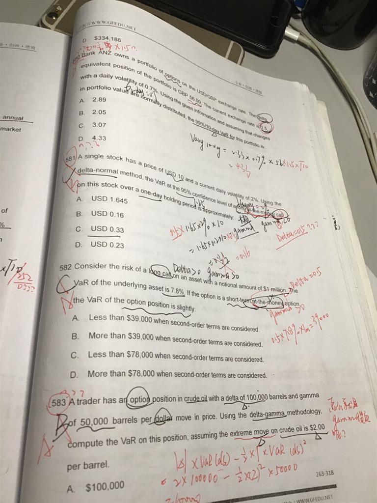 老师,麻烦解答一下263页的580题和581题和583题 581题我看了delta的讲义的图是at the money delta 接近0.5但讲义上没有明确指出等于0.5啊是可以近似认为吗? 583题看答案后面部分的gamma也等于2这是为什么?