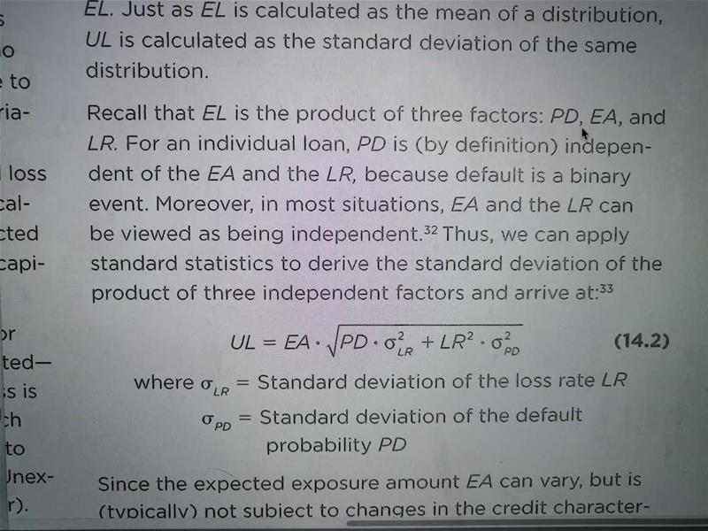 如何推导这个式子,UL代表波动性,这个式子中根号下的部分由LR和PD的波动性构成为什么LR的方差乘以PD,而PD的方差乘以LR^2?如何解释?