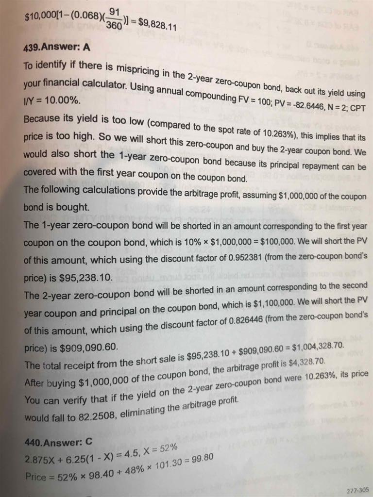 老师,习题集439题的答案看不太懂是如何快速判断有没有套利空间的。按照答案的方法我同样可以计算出2-year coupon bond的YTM也是10%<spot rate,说明价格高估了。那我岂不是也应该short 2-year Coupon Bond?