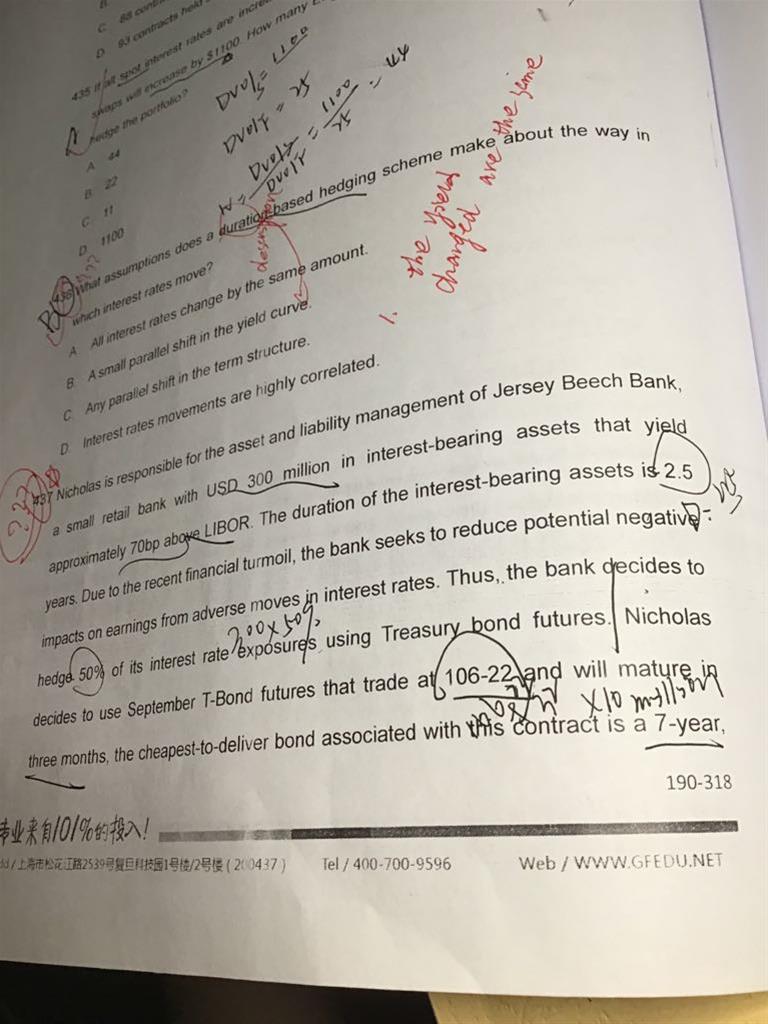 已回答为什么每次视频解析讲的都比答案解析简单呢…答案解析我都看不懂😓 1.“With duration mapping, a portfolio is replaced by a zero-coupon bond with maturity equal to the duration of the portfolio. The risk of the hypothetical zeros is less than the risk of a coupon bond of comparable maturity.(这前后两句话有关联嘛,前面是说把原债券映射成maturity是久期的零息债,后面拿来跟它比的a coupon bond of comparable maturity是什么?说的不是principal mapping出来的零息债啊。)Therefore, the portfolio VaR using duration mapping is less than the portfolio VaR using principal mapping”然后结尾又得出了duration mapping跟principal mapping的对比结论😓 2.“According to the definition and the question specification of buckets, both VaRs should be the same.Option D is incorrect because of the same reason for the correctness of Option A.”这句话啥意思看不懂……