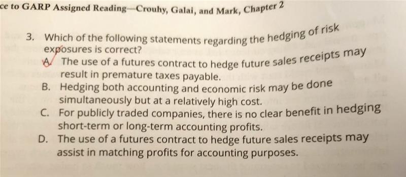 首先,a为什么会导致taxs payable? b里面accounting risk为什么不能和economic risk同时发生?这两个风险是指的什么? d为什么期货合约不能match profit?