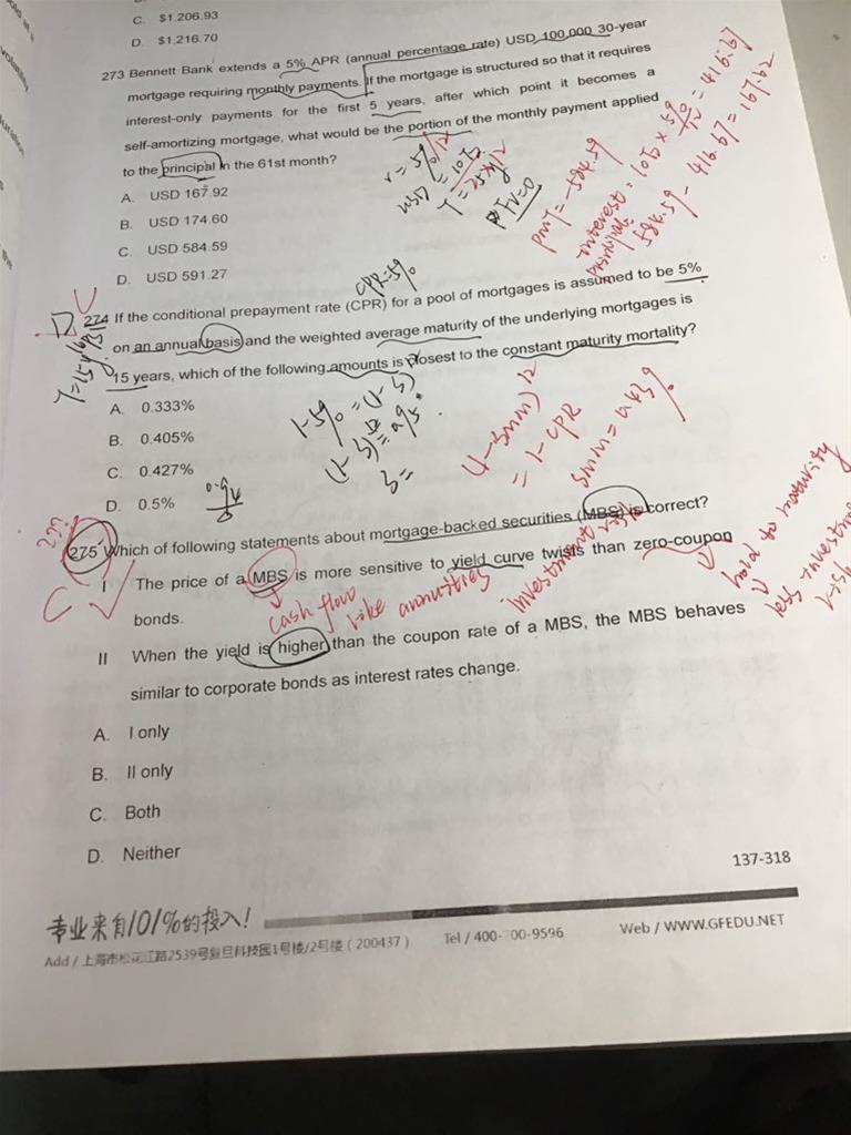 老师,我用表格试算了一下,6%的5年期债券久期一般不会是4.5,反算的话,YTM可能会是负值。还有,把6%的债券拆成利息和本金两部分,再把利息*3加本金就是18%的债券,不应该直接来个三倍。按这个思路去计算18%的固定债券久期,大概是3.95,代入计算本题结果是2.6,我不敢说这样是对的,只是觉得这样好象能想通。这个题里,不知道浮动利率是多少,但YTM很小,它也不会大,所以,18%-2*L债券的久期应该小于4.5,计算出13.5还是觉得有问题。老师能不能再研究一下。