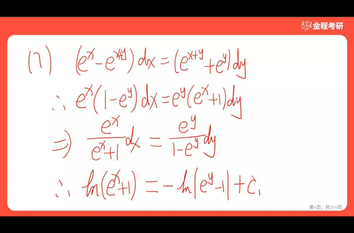 还有老师我有个问题就是微分方程的通解是不是不用必须化成y=……这种等式啊?因为这几题我看老师做下来也是有的化简成y=……有的只化简成带y的函数表达,但我最开始做的时候是全部最终给化简成了y=……的式子,所以我有些题比老师做的多了好多繁琐且复杂的步骤,还不一定是对的,如果不用必须化成y=……的话,还可以节省点时间和保证正确率。